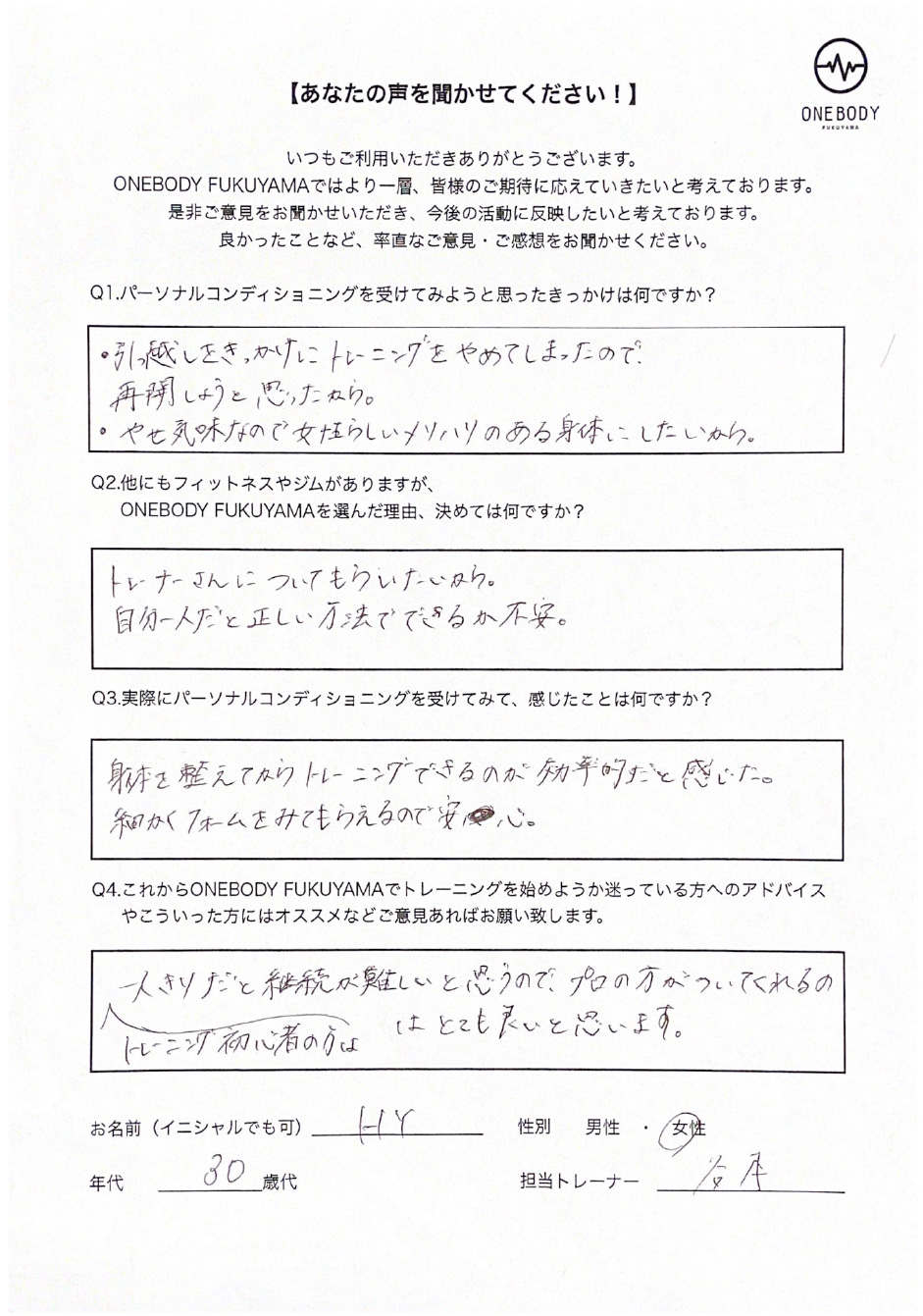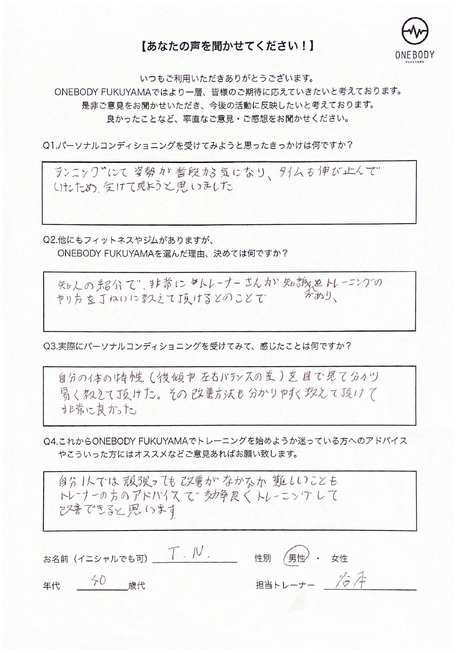 自分1人では頑張っても改善がなかなか難しいこともトレーナーの方のアドバイスで効率よくトレーニングして改善できると思います。